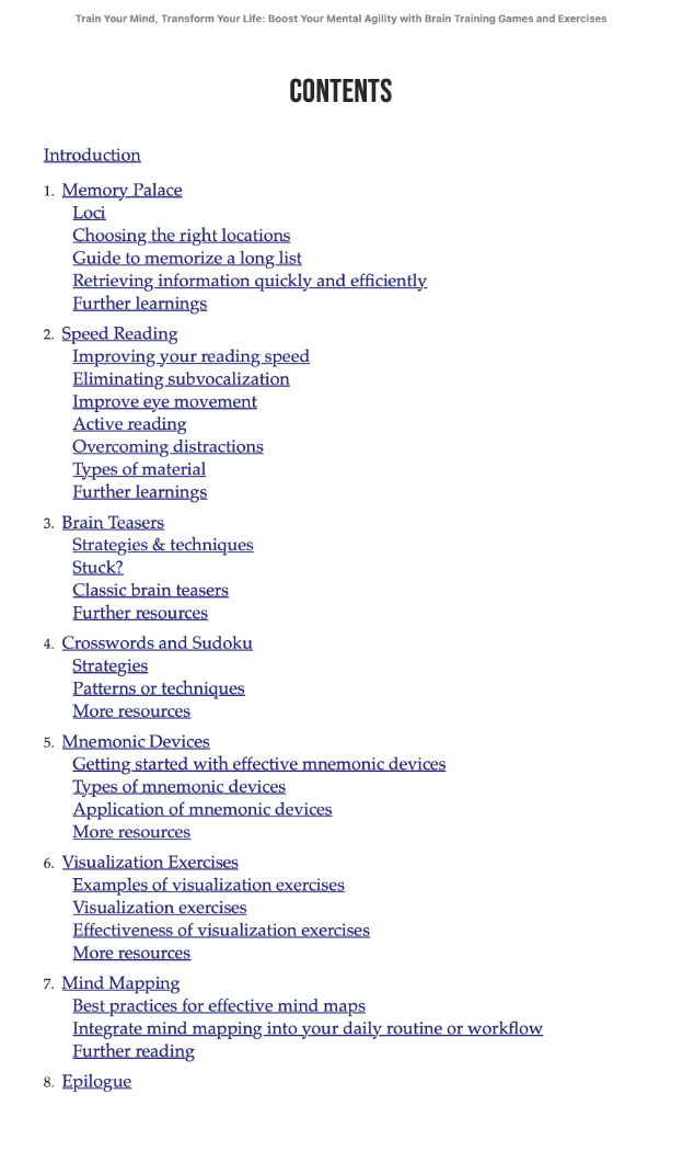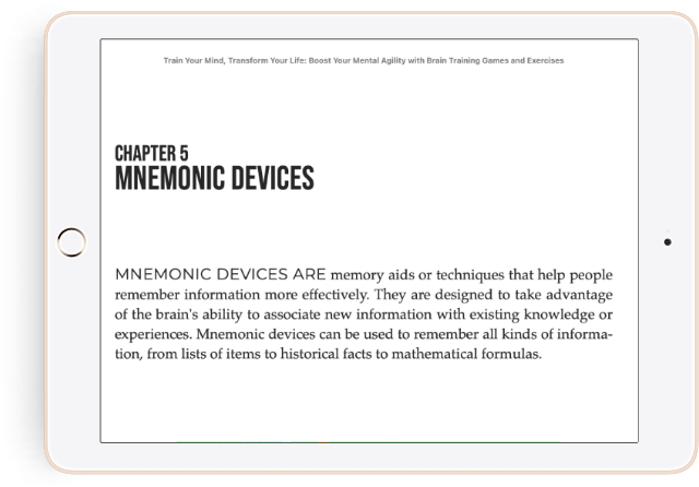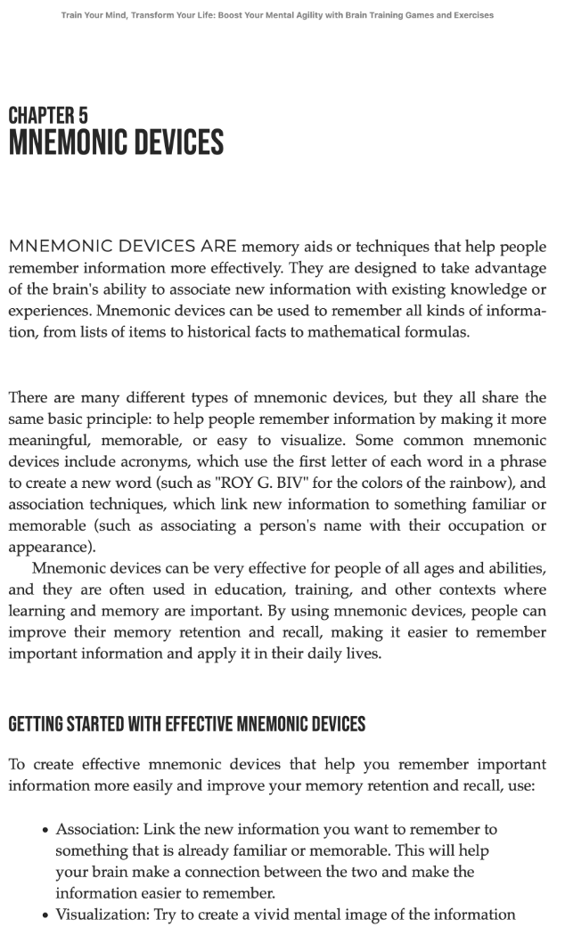 Whether you’re a student looking to improve your memory and concentration, a professional seeking to boost your productivity and creativity, or simply someone who wants to keep their mind sharp and active, this ebook has something for you.